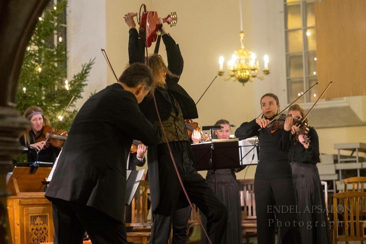 Classical and rock music have created symbiotic forms in his artistry, ranging from performing Bach’s violin concerto on electric guitar to improvising rock solos on viola with the Estonian National Symphony Orchestra (ERSO).